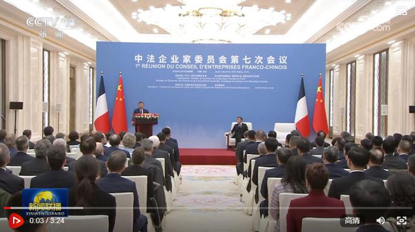 12月4日中午,國家主席習近平在北京同法國總統(tǒng)馬克龍共同出席中法企業(yè)家委員會第七次會議閉幕式并致辭。
